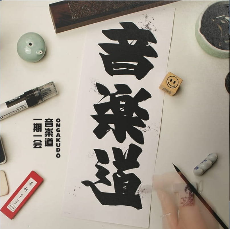 Oprawa graficzna zasługuje na oddzielny akapit, bo mamy tu prawdziwe dzieło. Podczas pamiętnej wyprawy do Tokio w zeszłym roku poznałem Mauko – Gosię Korczak, która w kraju kwitnącej wiśni kontynuowała swoje nauki w dziedzinie japońskiej kaligrafii Shodō. Od razu wiedziałem, że musimy coś wkrótce wspólnie stworzyć. Oczywiście z entuzjazmem zareagowała na propozycję stworzenia okładki pod nasz projekt i zaproponowała też świetną nazwę na całą serię (nie zamierzamy kończyć na tej jednej płycie!). I tak obok pięknej okładki mamy też długofalowy pomysł na naszą „ongakudō”, czyli „drogę muzyki”.